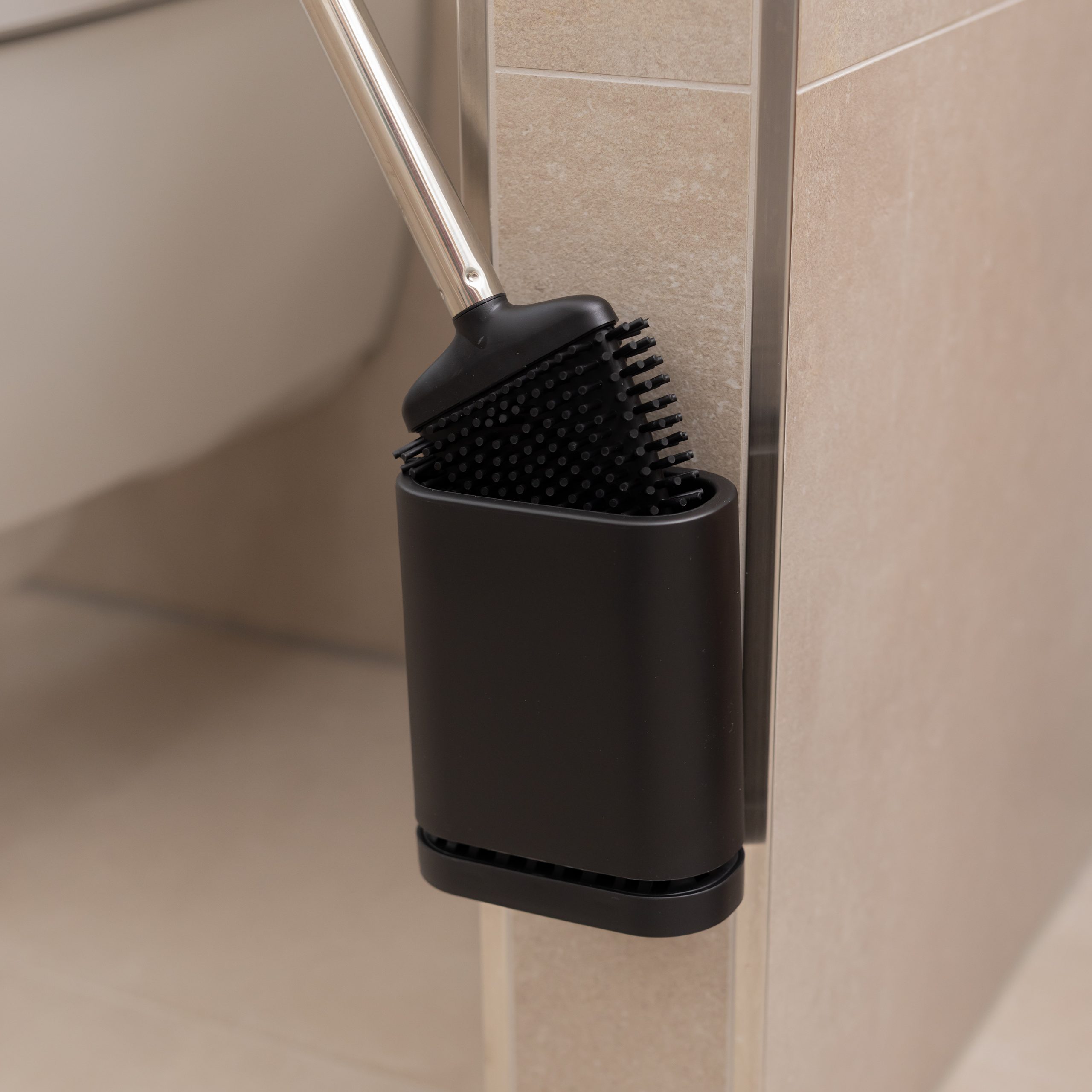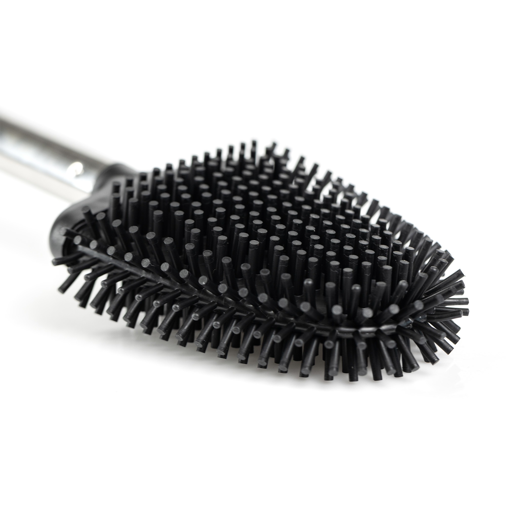 Die wasser- und schmutzabweisende Silikonoberfläche sorgt dafür, dass die Bürste nach der Reinigung sauber bleibt. Der belüftete Halter lässt Luft zirkulieren, was die Bürste schnell trocknen lässt.